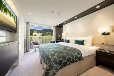 All cabins in the AMADEUS fleet are outside, the majority of which also have floor-to-ceiling, opening panoramic glass fronts with French balconies or lowerable window fronts. The suites also offer luxurious, walk-on outdoor balconies with a cozy seating area for an incomparable view of the passing river landscape.