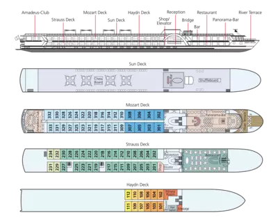 Designed with both style and practicality in mind, our Haydn Deck cabins offer a peaceful and well-equipped space for your journey.