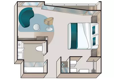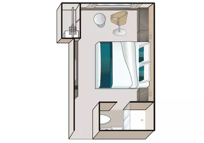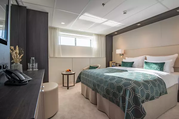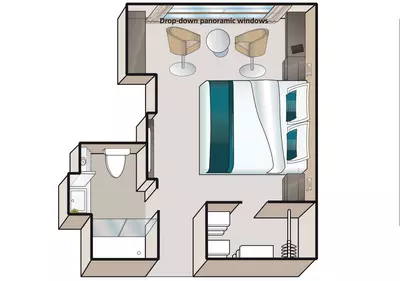 Each cabin features a spacious bathroom with a walk-in shower, luxurious Rituals bath products, and a hair dryer, along with a fixed panoramic window that fills the space with natural light. Thoughtful touches like a comfortable double or twin bed, generously-sized wardrobe, secure in-room safe, flat-screen TV, individual climate control, well-stocked minibar and direct dial telephone ensure a restful and well-equipped stay.