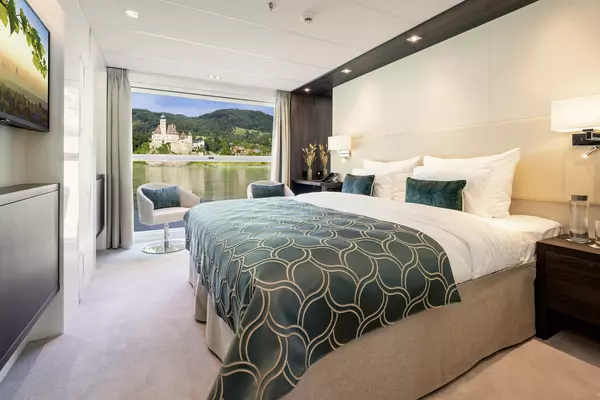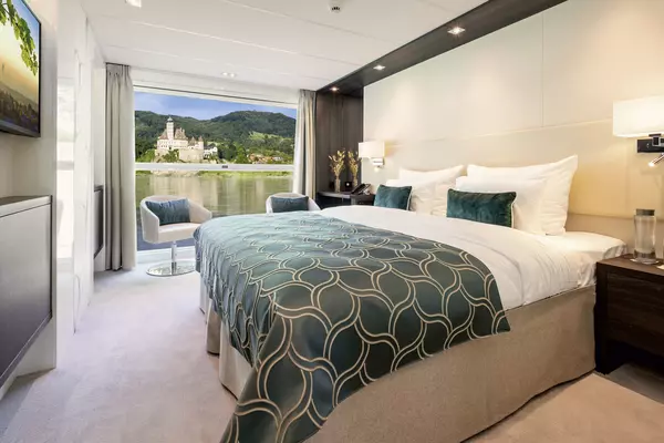 These staterooms feature the AMADEUS Signature Bed (available as a double or twin), a drop-down panoramic window for uninterrupted river views, a spacious bathroom with a walk-in shower and premium Rituals® bathing products, walk-in wardrobe, flat-screen TV, individual climate control, well-stocked minibar, in-room safe, hair dryer, and direct dial telephone — ensuring a comfortable and refined travel experience.