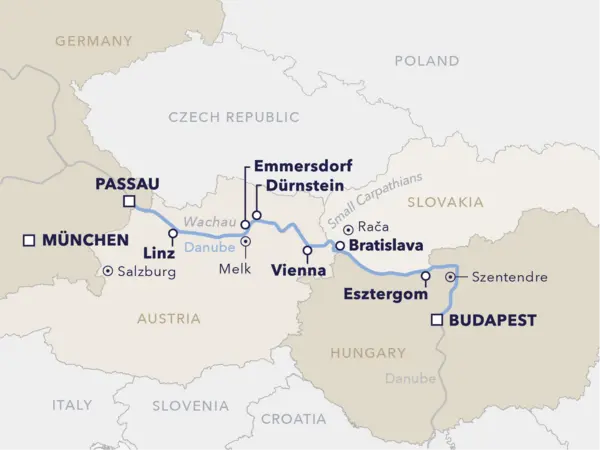Your journey begins aboard the elegant AMADEUS Amara, gliding along the legendary Danube through Budapest, Vienna, Bratislava and the scenic Wachau Valley. Discover grand architecture, classical music, and fine regional cuisine — all framed by the gentle rhythm of the river.