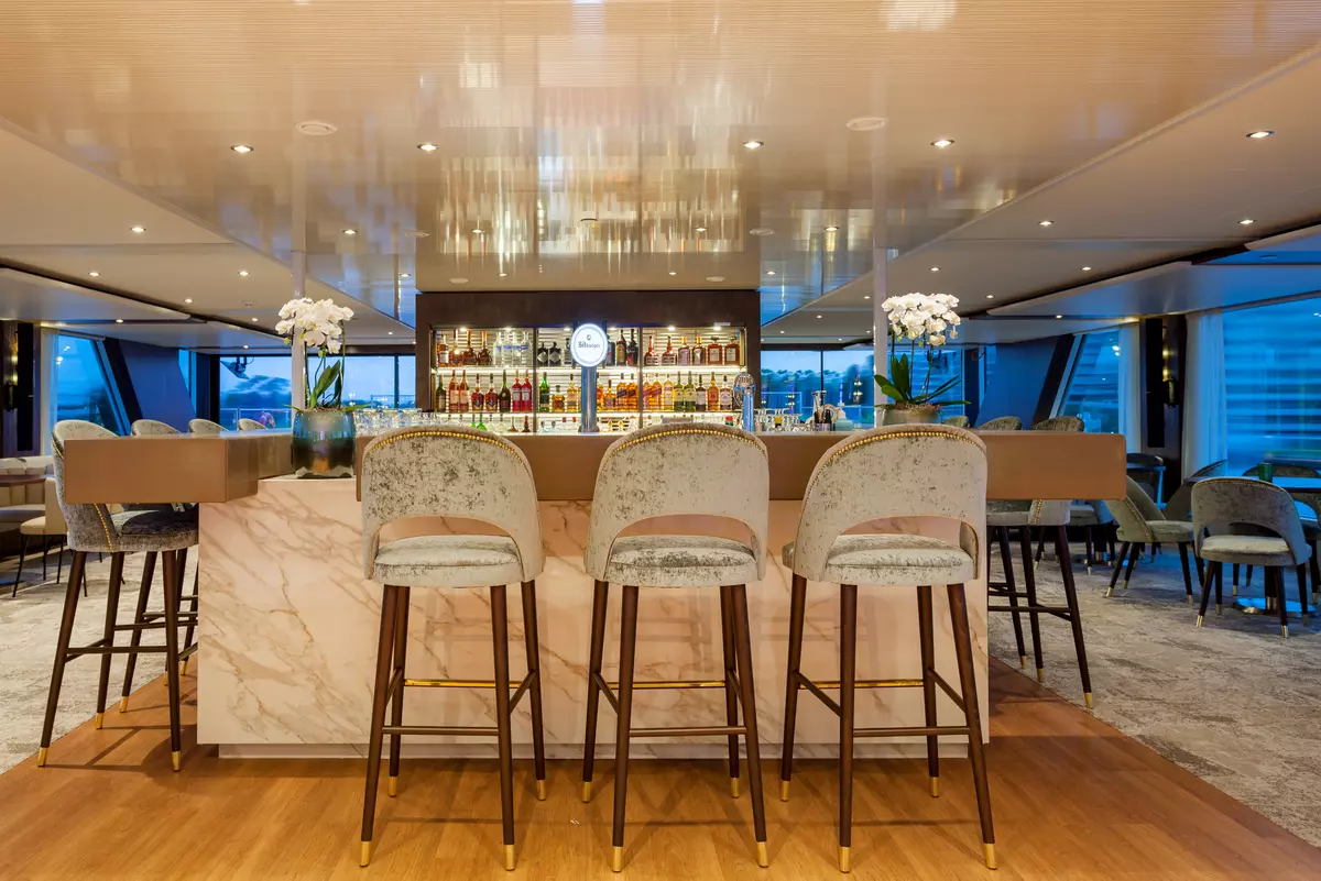 After a day exploring, stop by the hydration station and quench your thirst with a refreshing glass of fruit-, ginger-, or cucumber-infused water; during the late evening, enjoy cocktails with passed hors d’oeuvres in the Panorama Bar. Every tasty, authentic dish is always prepared on board, in our own kitchen, by the AMADEUS culinary team and served fresh to you.