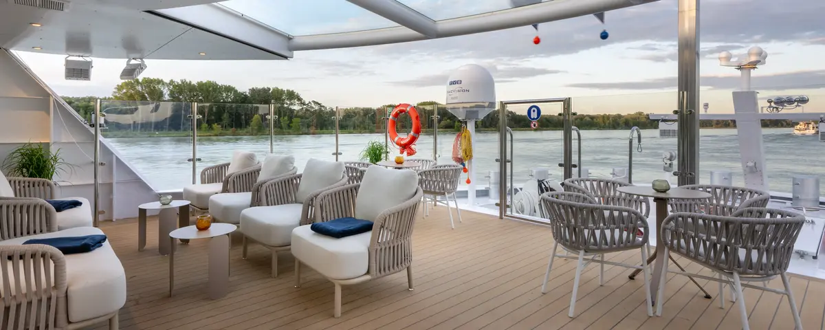 12 Suiten mit viel Platz laden zum wonnigen Wohlfühlen ein – ob draußen auf dem begehbaren Balkon oder drinnen in der gemütlichen Leseecke. Unsere 70 Kabinen baden geradezu im Sonnenlicht – großteils durch automatisch absenkbare Panorama-Fensterfronten. Von Bug bis Heck bietet die AMADEUS Amara lichtdurchflutete Räume, gemütliche Ecken, idyllische Außenbereiche und einladende Treffpunkte für aktive Erlebnisse oder ruhige Momente. Nehmen Sie eine erfrischende Auszeit im herrlichen Indoor-Pool oder genießen Sie ein Glas Wein am großen Sonnendeck: Die AMADEUS Amara ist der Inbegriff von höchstem Reisekomfort kombiniert mit atemberaubenden Landschaftskino.