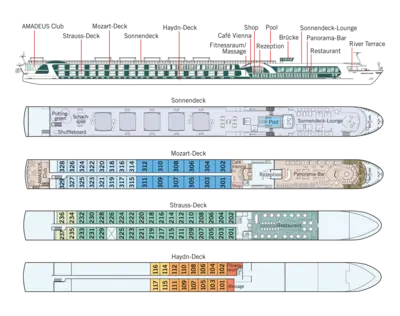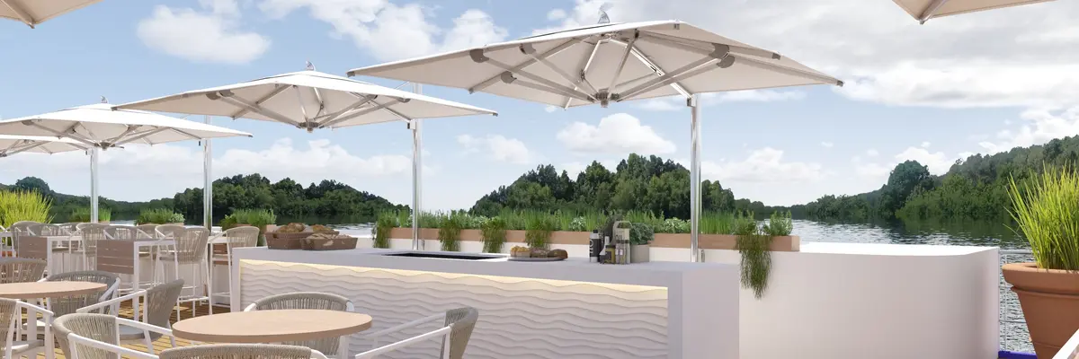 Erleben Sie erholsame Stunden in 12 großzügigen Suiten mit Balkon oder 67 lichtdurchfluteten Außenkabinen mit Panoramafenstern. Genießen Sie kulinarische Highlights im stilvollen Panorama-Restaurant oder entspannen Sie auf dem Sonnendeck mit Pool und Lido-Bar. Für aktive Momente steht ein hochmoderner Fitnessraum bereit, während die „River Terrace“ zum Träumen einlädt. Modernste Umwelttechnologien wie ein hybrider Antrieb und ein System zur effizienten Wärmerückgewinnung machen Ihre Reise nicht nur komfortabel, sondern auch nachhaltig. Legen Sie mit uns ab – und erleben Sie unvergessliche Reisen entlang der schönsten Flüsse Europas.