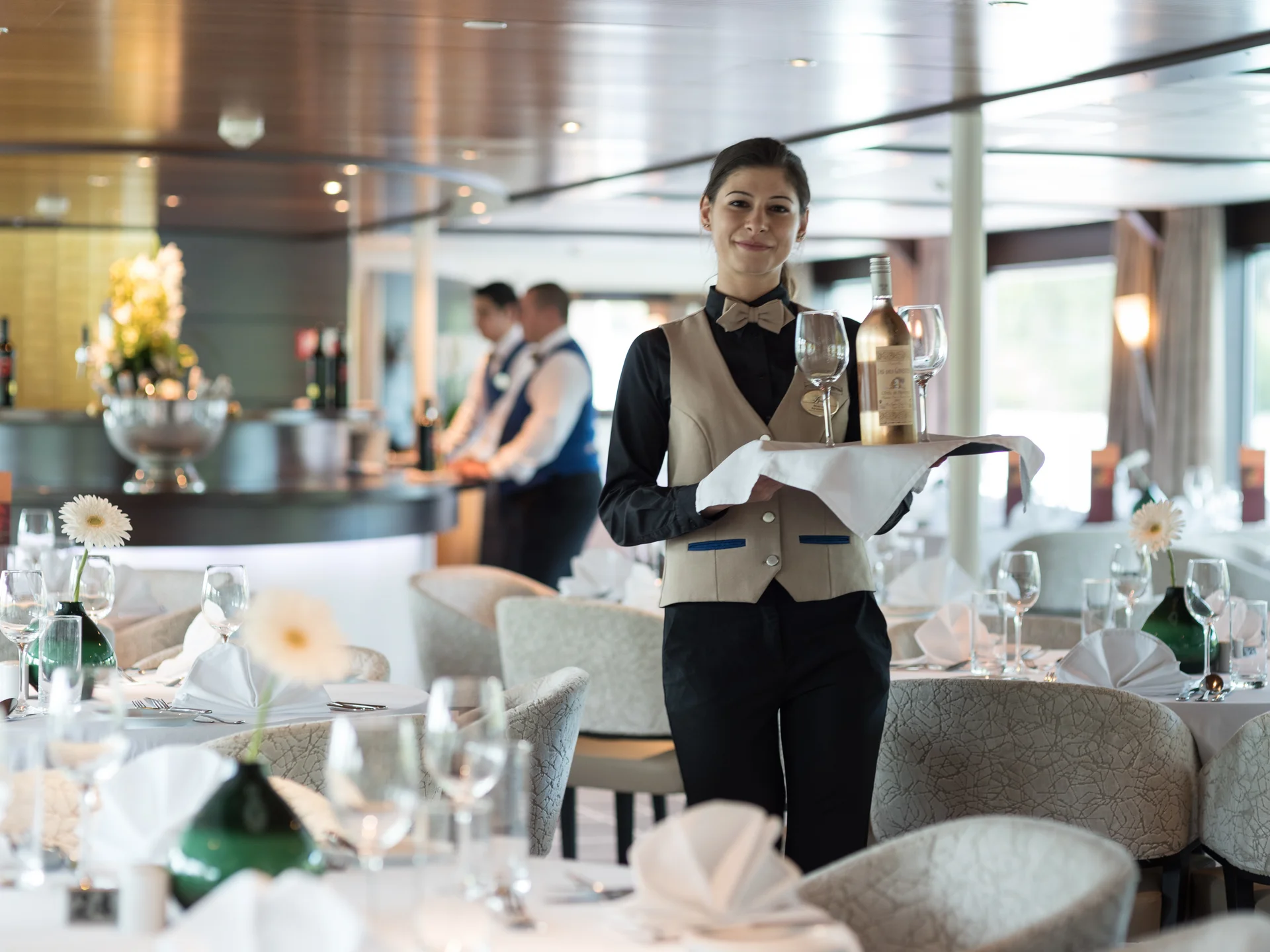 Kulinarisch erwartet Sie im Panorama-Restaurant eine Auswahl regional inspirierter Spezialitäten, begleitet von ständig wechselnden Ausblicken auf die vorbeiziehende Flusslandschaft. Ein Konzept, das Genuss und Reiseerlebnis auf stilvolle Weise miteinander verbindet.
