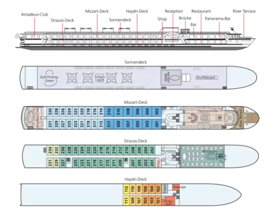 Zum Beispiel in einer unserer 12 traumhaften Suiten. Von den französischen Balkonen aus sind Sie der Natur der Normandie ganz nah. Auch die meisten unserer 62 charmant gestalteten Kabinen bieten Ihnen einen französischen Balkon. Als wir die AMADEUS Diamond im Jahr 2019 komplett renovierten, bauten wir in jede Suite und Kabine auch modernsten Komfort mit ein. Ein SMART-TV-System zum Beispiel sowie High-Speed-WLAN – wodurch Sie überall an Bord besten Empfang haben. Bestens empfangen werden Sie auch in den wunderbaren Badezimmern mit Dusche und WC – sowie selbstredend in allen öffentlichen Bereichen auf unserem Schiff. Haben Sie schon mal Golf auf unserem Sonnendeck gespielt? Wie wäre es mit bewegenden Momenten im bordeigenen Fitnessstudio? Und danach lassen Sie es bei einer wohltuenden Massage gutgehen. Wie eine Massage für den Gaumen ist übrigens unsere Kulinarik an Bord. Während Sie in unserem Panorama-Restaurant landestypische Gerichte genießen, serviert Ihnen die Natur ein prächtiges Schauspiel nach dem anderen. Klingt köstlich, oder? Wir lieben es eben genauso genussvoll wie Sie.