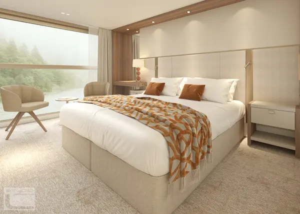 Erleben Sie erholsame Stunden in 12 großzügigen Suiten mit Balkon oder 67 lichtdurchfluteten Außenkabinen mit Panoramafenstern. Genießen Sie kulinarische Highlights im stilvollen Panorama-Restaurant oder entspannen Sie auf dem Sonnendeck mit Pool und Lido-Bar. Für aktive Momente steht ein hochmoderner Fitnessraum bereit, während die „River Terrace“ zum Träumen einlädt. Modernste Umwelttechnologien wie ein hybrider Antrieb und ein System zur effizienten Wärmerückgewinnung machen Ihre Reise nicht nur komfortabel, sondern auch nachhaltig. Legen Sie mit uns ab – und erleben Sie unvergessliche Reisen entlang der schönsten Flüsse Europas.