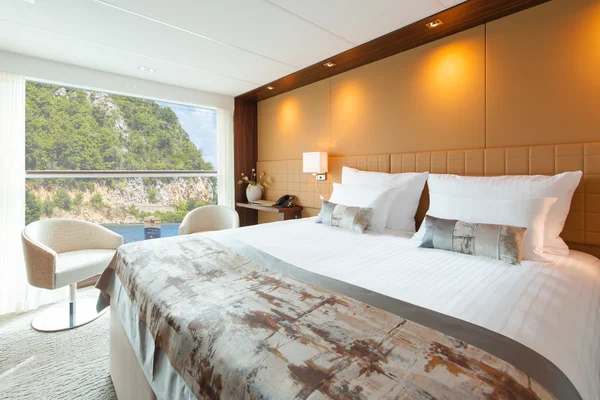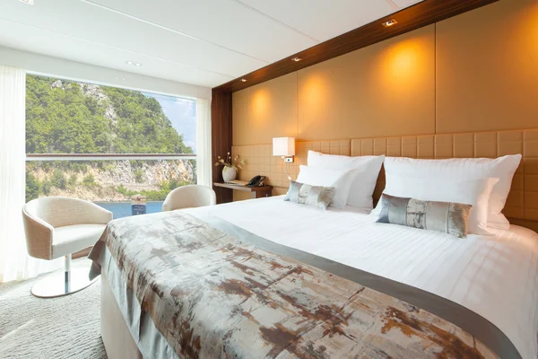 Großzügiges Badezimmer, Aussichtsfenster (Öffnen nicht möglich), begehbarer Kleiderschrank, wahlweise Doppelbett oder zwei Einzelbetten, Flachbildschirm-TV, individuell regulierbare Klimaanlage, Dusche/WC, Haartrockner, Telefon und Safe. Kabinen mit Verbindungstüren sind auf Anfrage verfügbar.
