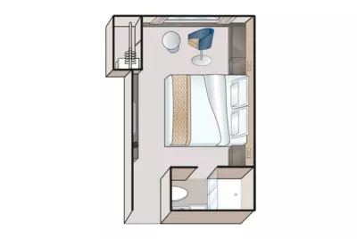Großzügiges Badezimmer, Aussichtsfenster (Öffnen nicht möglich), Minibar, begehbarer Kleiderschrank, wahlweise Doppelbett oder zwei Einzelbetten, Flachbildschirm-TV, individuell regulierbare Klimaanlage, Dusche/WC, Haartrockner, Telefon und Safe.