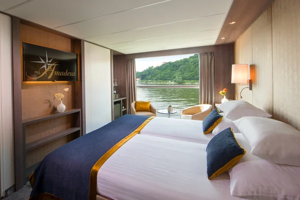 Großzügiges Badezimmer, Aussichtsfenster (Öffnen nicht möglich), begehbarer Kleiderschrank, wahlweise Doppelbett oder zwei Einzelbetten, Flachbildschirm-TV, individuell regulierbare Klimaanlage, Dusche/WC, Haartrockner, Telefon und Safe. Kabinen mit Verbindungstüren sind auf Anfrage verfügbar.